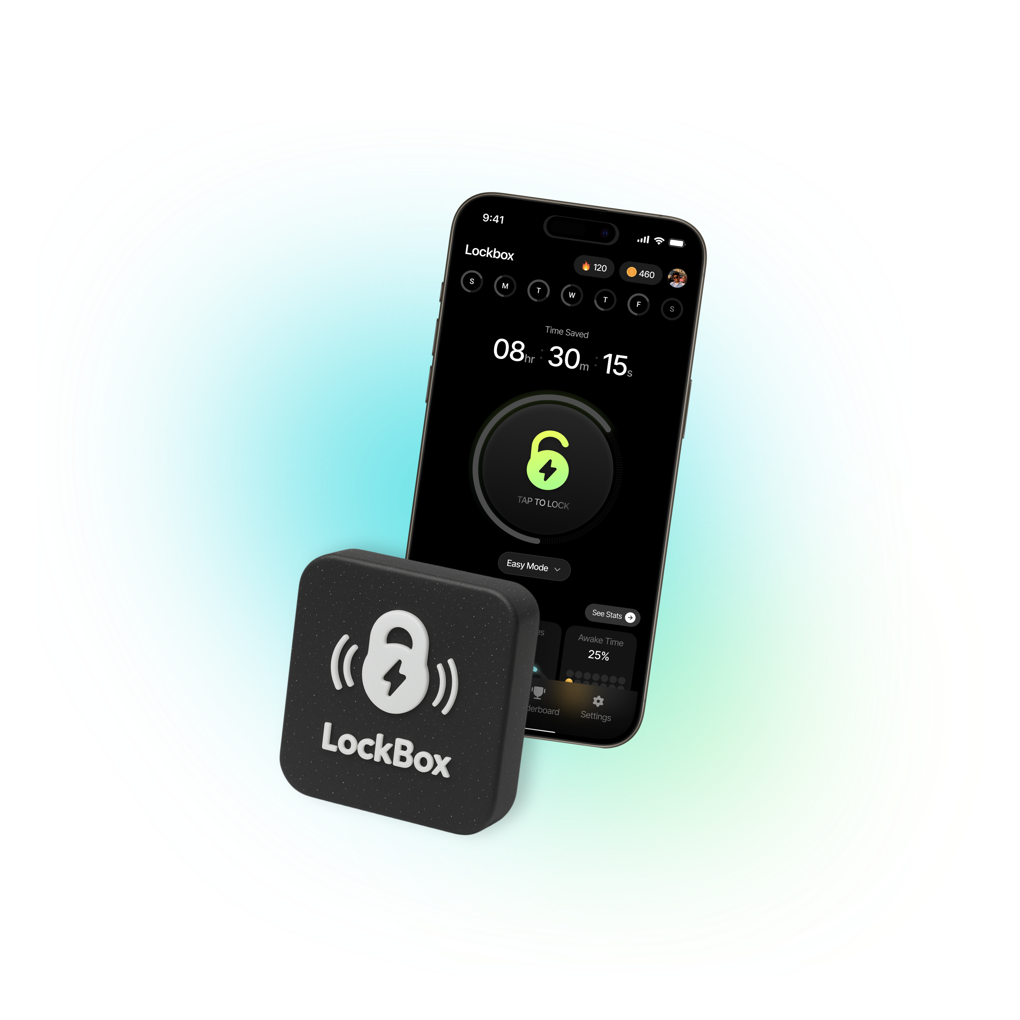 Click the Lock button on the app and scan your LockBox to begin locking apps so you can focus.